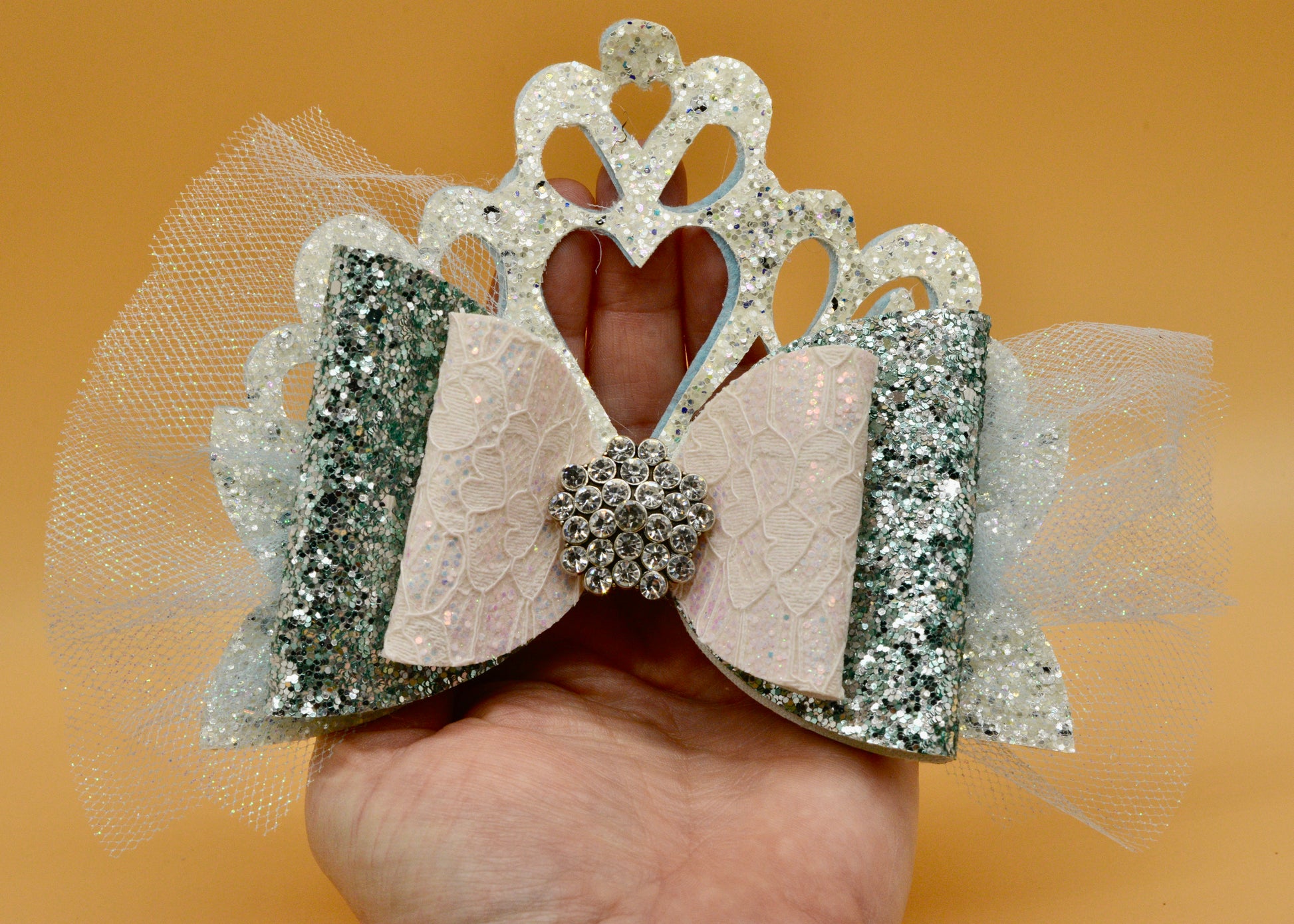 Girls character glitter hair bow, Crown Bow, Disney, Cinderella